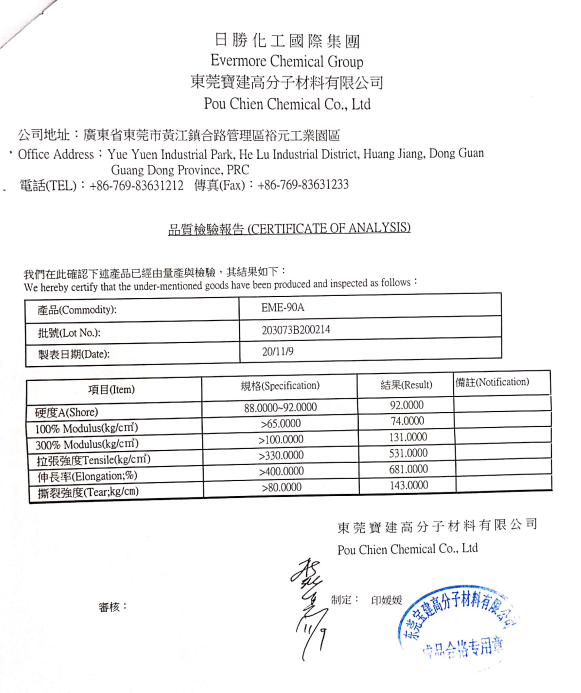 臺(tái)灣日勝EME-90A,透明度2.5-3.5MM,耐黃3級(jí),成型快,耐水解,抗出粉。